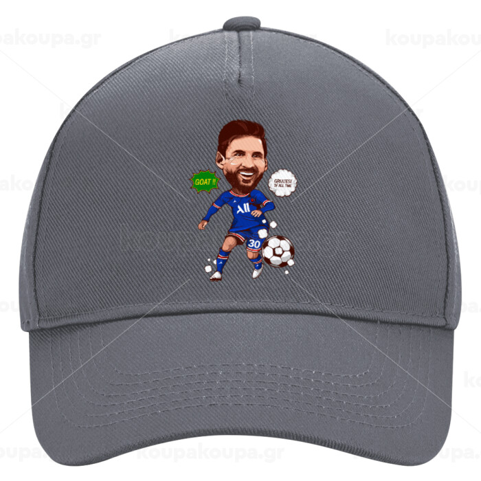 Lionel Messi drawing, Ultimate Adult Hat Grey, (100% COTTON DRILL, ADULT, UNISEX, ONE SIZE)