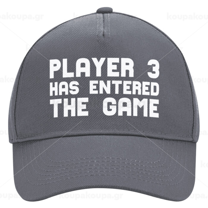Player 3 has entered the Game, Ultimate Adult Hat Grey, (100% COTTON DRILL, ADULT, UNISEX, ONE SIZE)