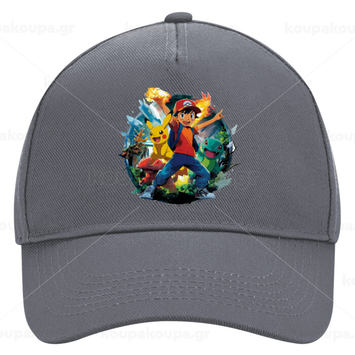 Ash Ketchum & Pikachu, Ultimate Adult Hat Grey, (100% COTTON DRILL, ADULT, UNISEX, ONE SIZE)