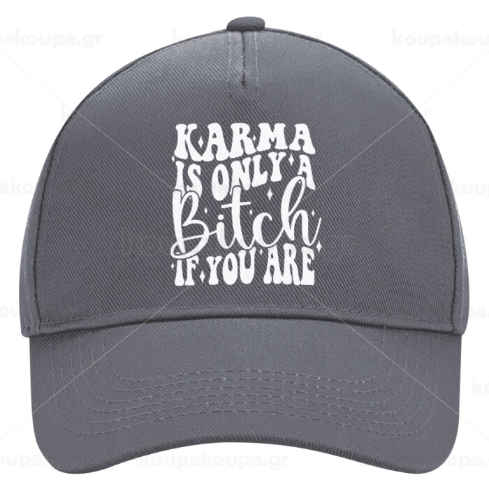 Karma is Only A Bitch if You Are, Ultimate Adult Hat Grey, (100% COTTON DRILL, ADULT, UNISEX, ONE SIZE)