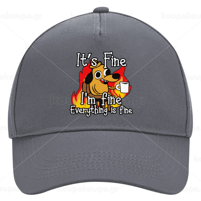It's Fine I'm Fine Everything Is Fine, Ultimate Adult Hat Grey, (100% COTTON DRILL, ADULT, UNISEX, ONE SIZE)