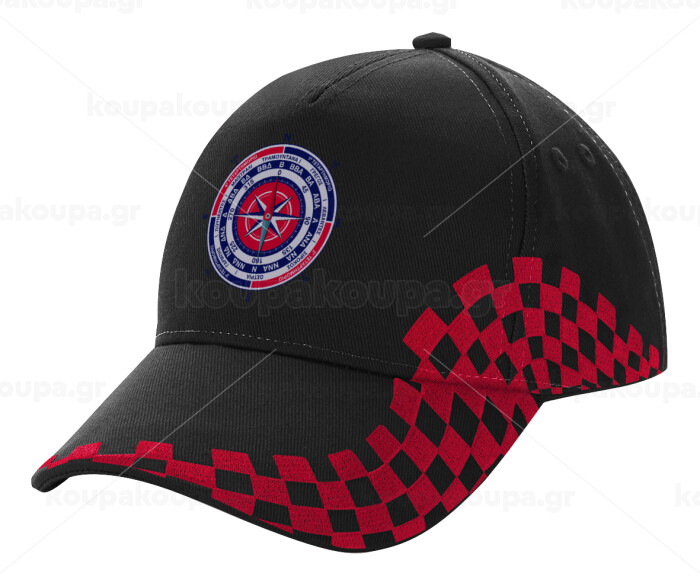 Wind compass, Adult Cap RACING Ultimate Black/Red, (100% COTTON DRILL, ADULT, UNISEX, ONE SIZE)
