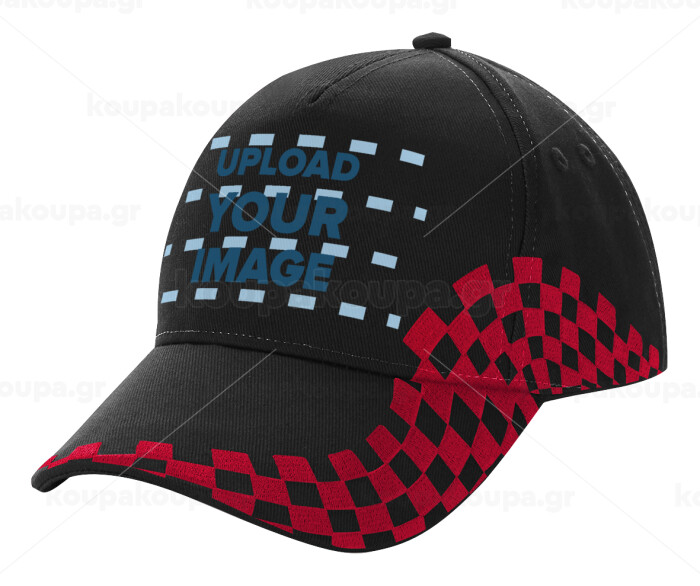 Upload your logo, Adult Cap RACING Ultimate Black/Red, (100% COTTON DRILL, ADULT, UNISEX, ONE SIZE)