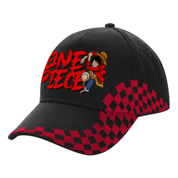 One Piece, Adult Cap RACING Ultimate Black/Red, (100% COTTON DRILL, ADULT, UNISEX, ONE SIZE)