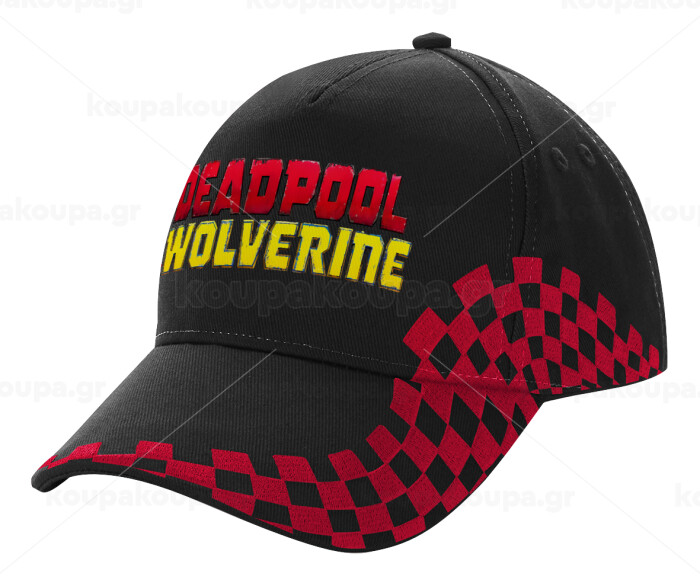 Superhero Deadpool Wolverine, Adult Cap RACING Ultimate Black/Red, (100% COTTON DRILL, ADULT, UNISEX, ONE SIZE)