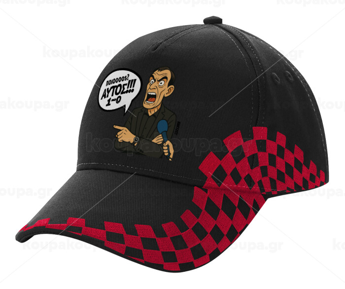 Μπαρτζό, Ποιος? Αυτός!!! 1-0, Adult Cap RACING Ultimate Black/Red, (100% COTTON DRILL, ADULT, UNISEX, ONE SIZE)