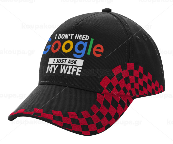 I don't need Google, just ask my WIFE, Adult Cap RACING Ultimate Black/Red, (100% COTTON DRILL, ADULT, UNISEX, ONE SIZE)