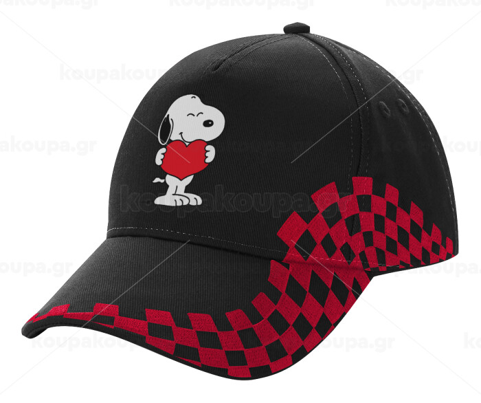 Snoopy takemy heart, Adult Cap RACING Ultimate Black/Red, (100% COTTON DRILL, ADULT, UNISEX, ONE SIZE)