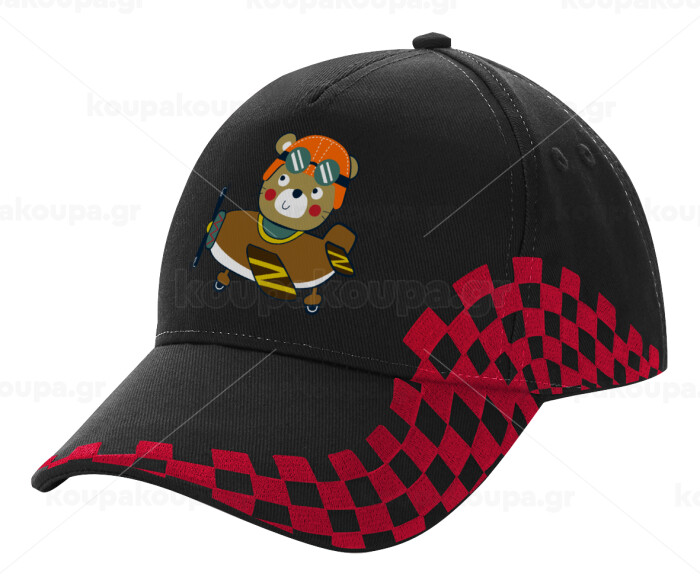 Kids Plane, Adult Cap RACING Ultimate Black/Red, (100% COTTON DRILL, ADULT, UNISEX, ONE SIZE)