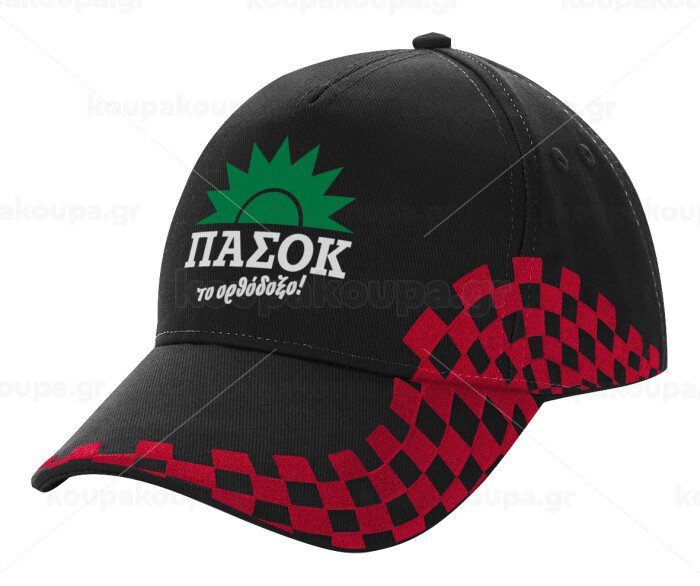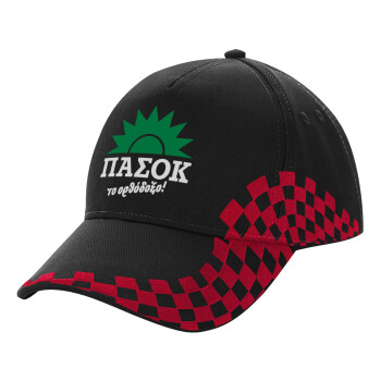 PASOK the orthodoxo, Adult Cap RACING Ultimate Black/Red, (100% COTTON DRILL, ADULT, UNISEX, ONE SIZE)