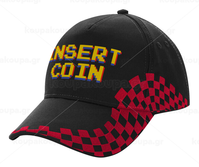 Insert coin!!!, Adult Cap RACING Ultimate Black/Red, (100% COTTON DRILL, ADULT, UNISEX, ONE SIZE)