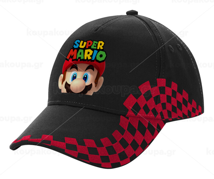 Super mario, Adult Cap RACING Ultimate Black/Red, (100% COTTON DRILL, ADULT, UNISEX, ONE SIZE)