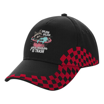 Splish splash your opinion is trash, Adult Cap RACING Ultimate Black/Red, (100% COTTON DRILL, ADULT, UNISEX, ONE SIZE)