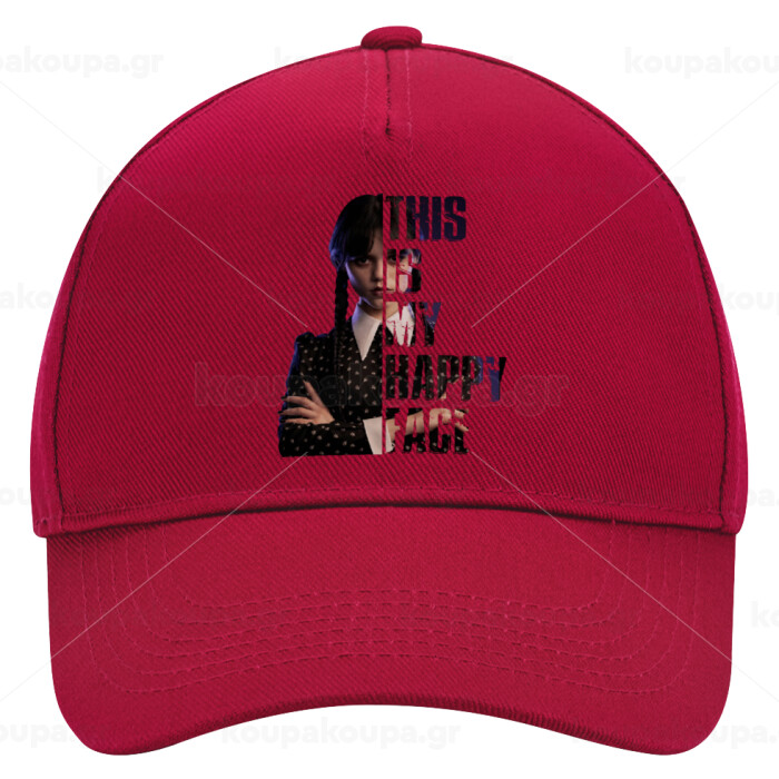 Wednesday, This is my happy face, Adult Ultimate Hat RED, (100% COTTON DRILL, ADULT, UNISEX, ONE SIZE)
