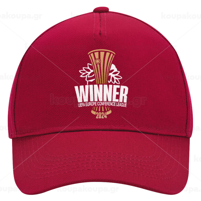 Europa Conference League WINNER, Adult Ultimate Hat RED, (100% COTTON DRILL, ADULT, UNISEX, ONE SIZE)