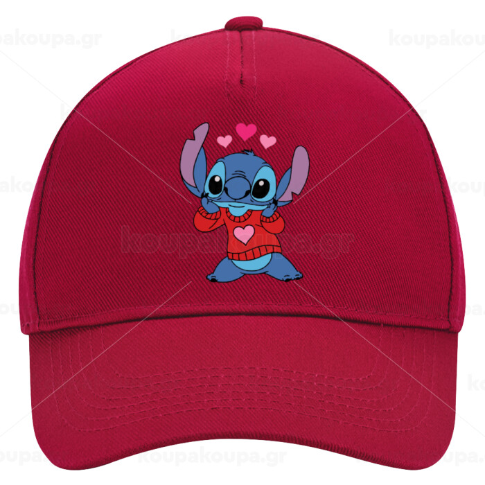 Stitch heart, Adult Ultimate Hat RED, (100% COTTON DRILL, ADULT, UNISEX, ONE SIZE)