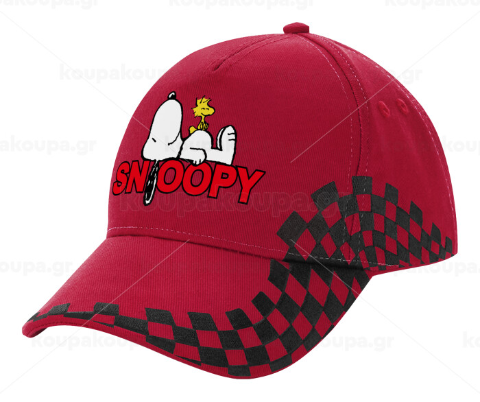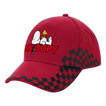 Snoopy sleep, Adult Cap RACING Ultimate Red/Black, (100% COTTON DRILL, ADULT, UNISEX, ONE SIZE ADULT)