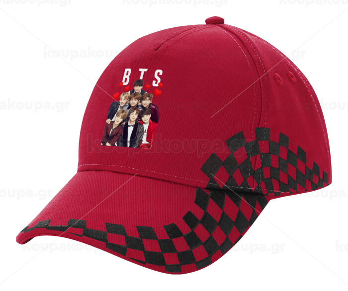BTS hearts, Adult Cap RACING Ultimate Red/Black, (100% COTTON DRILL, ADULT, UNISEX, ONE SIZE ADULT)
