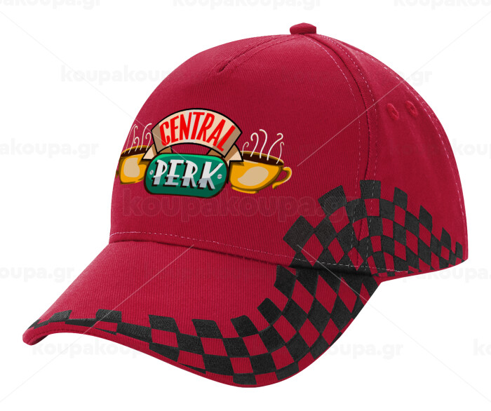Central perk, Adult Cap RACING Ultimate Red/Black, (100% COTTON DRILL, ADULT, UNISEX, ONE SIZE ADULT)
