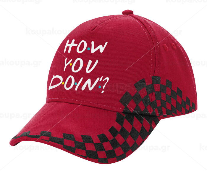 Friends How You Doin'?, Adult Cap RACING Ultimate Red/Black, (100% COTTON DRILL, ADULT, UNISEX, ONE SIZE ADULT)