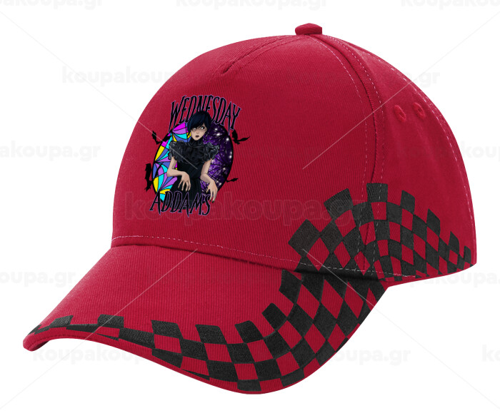 Wednesday Jenna Ortega, Adult Cap RACING Ultimate Red/Black, (100% COTTON DRILL, ADULT, UNISEX, ONE SIZE ADULT)