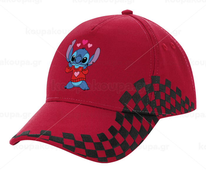 Stitch heart, Adult Cap RACING Ultimate Red/Black, (100% COTTON DRILL, ADULT, UNISEX, ONE SIZE ADULT)