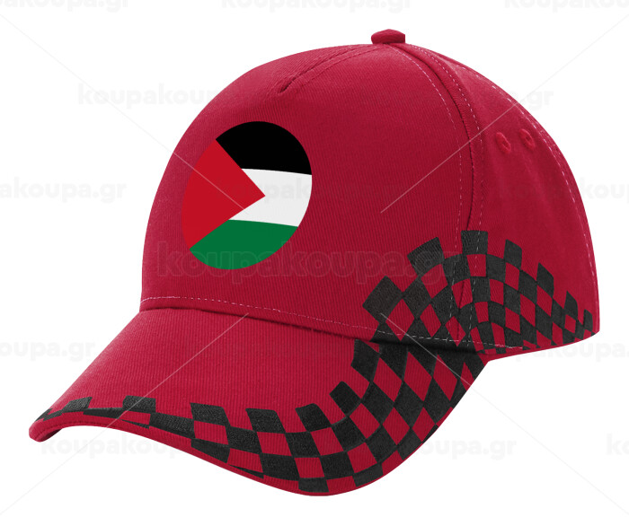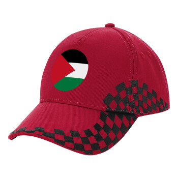 Palestine Flag, Adult Cap RACING Ultimate Red/Black, (100% COTTON DRILL, ADULT, UNISEX, ONE SIZE ADULT)