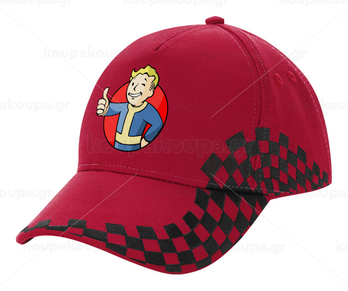 Fallout Vault Boy, Adult Cap RACING Ultimate Red/Black, (100% COTTON DRILL, ADULT, UNISEX, ONE SIZE ADULT)