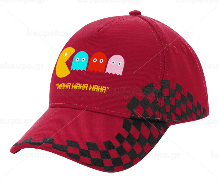 Pacman waka waka waka, Adult Cap RACING Ultimate Red/Black, (100% COTTON DRILL, ADULT, UNISEX, ONE SIZE ADULT)