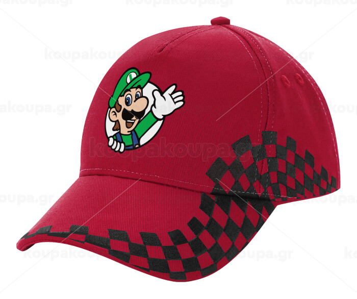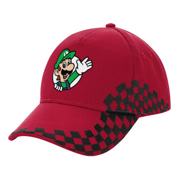 Super mario Luigi win, Adult Cap RACING Ultimate Red/Black, (100% COTTON DRILL, ADULT, UNISEX, ONE SIZE ADULT)