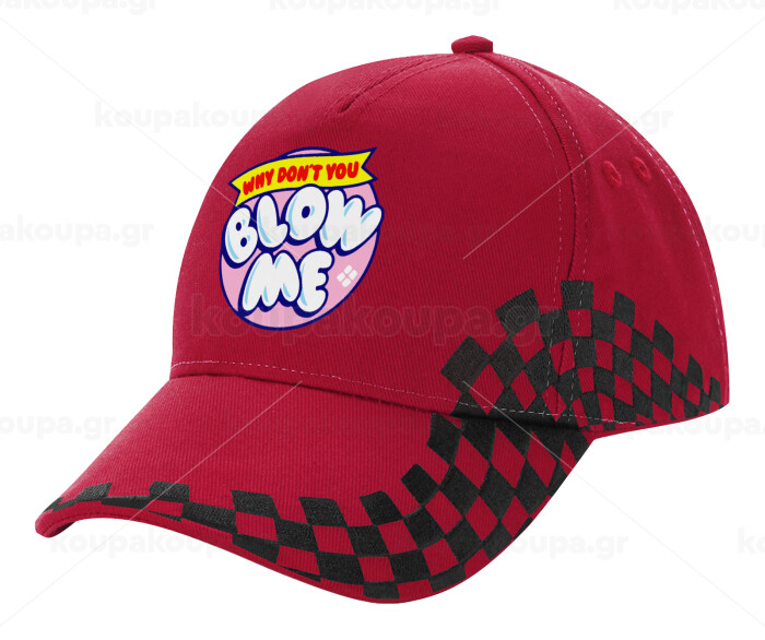 Why Don't You Blow Me Funny, Adult Cap RACING Ultimate Red/Black, (100% COTTON DRILL, ADULT, UNISEX, ONE SIZE ADULT)
