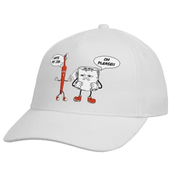 I hate my job, Adult Baseball Cap, Drill, White (100% COTTON, ADULT, UNISEX, ONE SIZE)