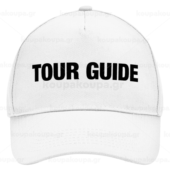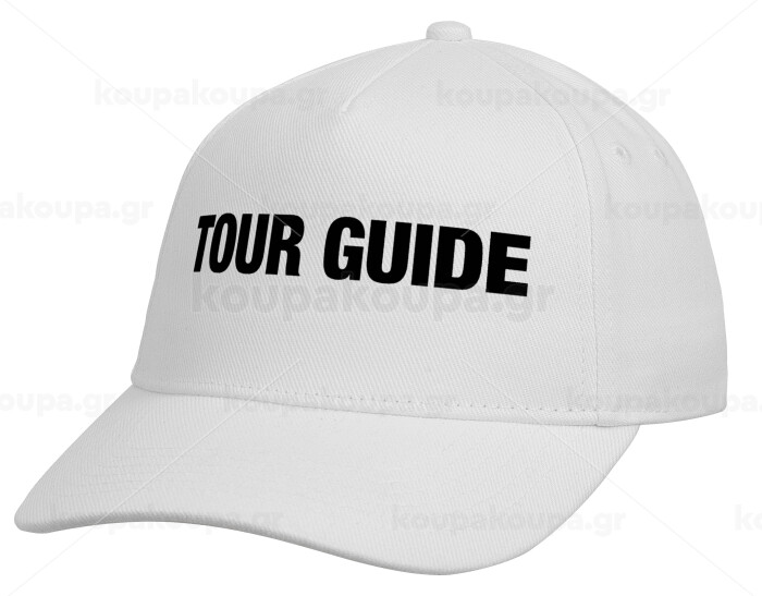 Tour Guide, Adult Baseball Cap, Drill, White (100% COTTON, ADULT, UNISEX, ONE SIZE)