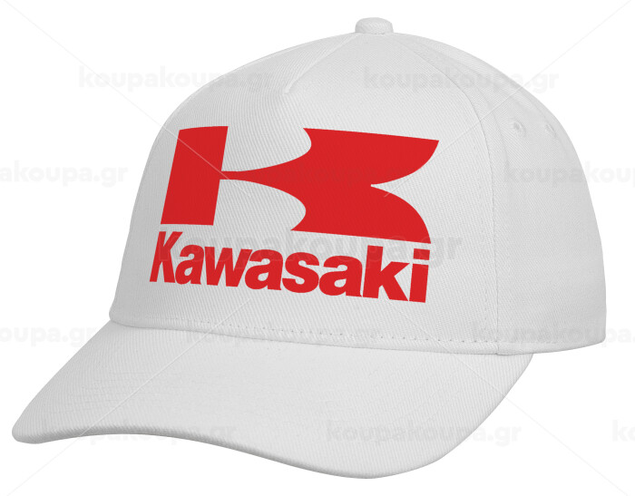 Kawasaki, Adult Baseball Cap, Drill, White (100% COTTON, ADULT, UNISEX, ONE SIZE)