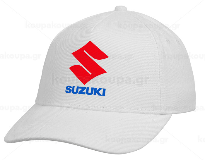 SUZUKI, Adult Baseball Cap, Drill, White (100% COTTON, ADULT, UNISEX, ONE SIZE)