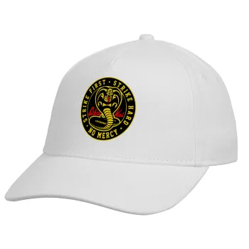 cobra kai strike first dojo, Adult Baseball Cap, Drill, White (100% COTTON, ADULT, UNISEX, ONE SIZE)