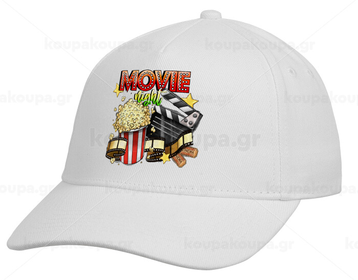 Movie night, Adult Baseball Cap, Drill, White (100% COTTON, ADULT, UNISEX, ONE SIZE)