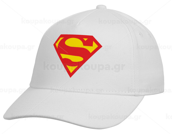 Superman, Adult Baseball Cap, Drill, White (100% COTTON, ADULT, UNISEX, ONE SIZE)
