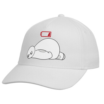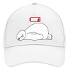 Baymax battery low, Adult Baseball Cap, Drill, White (100% COTTON, ADULT, UNISEX, ONE SIZE)