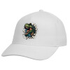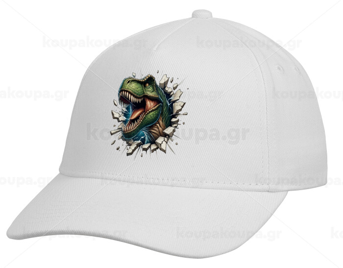Dinosaur break wall, Adult Baseball Cap, Drill, White (100% COTTON, ADULT, UNISEX, ONE SIZE)