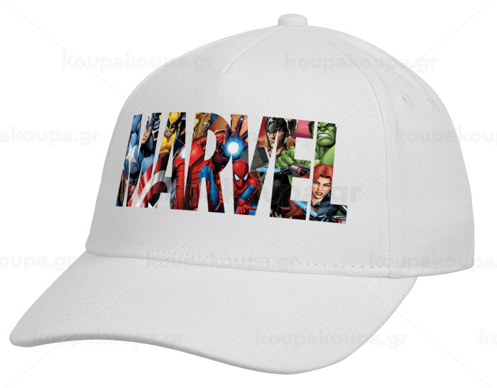 MARVEL characters, Adult Baseball Cap, Drill, White (100% COTTON, ADULT, UNISEX, ONE SIZE)
