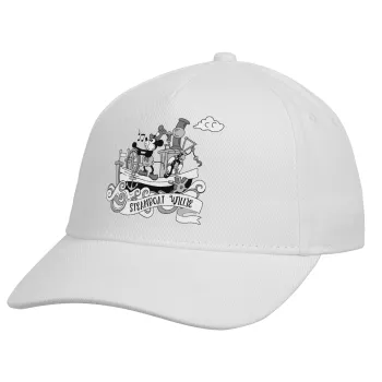 Mickey steamboat, Adult Baseball Cap, Drill, White (100% COTTON, ADULT, UNISEX, ONE SIZE)