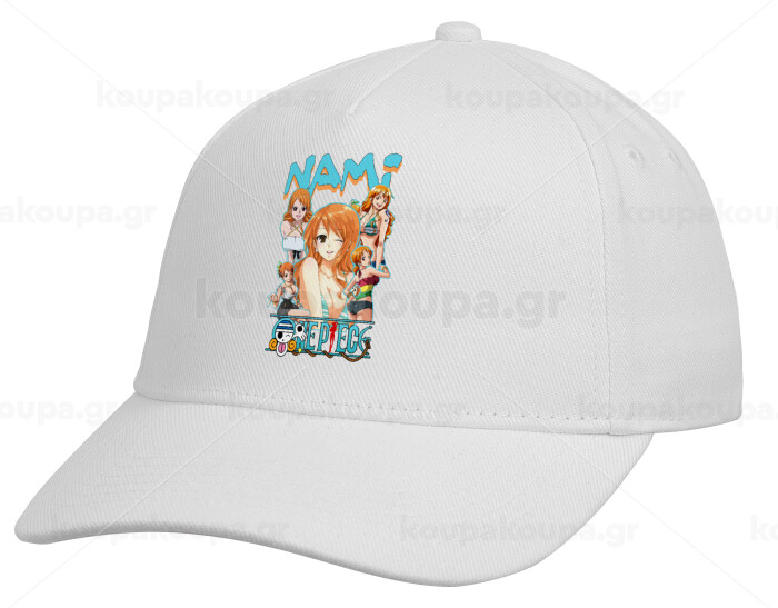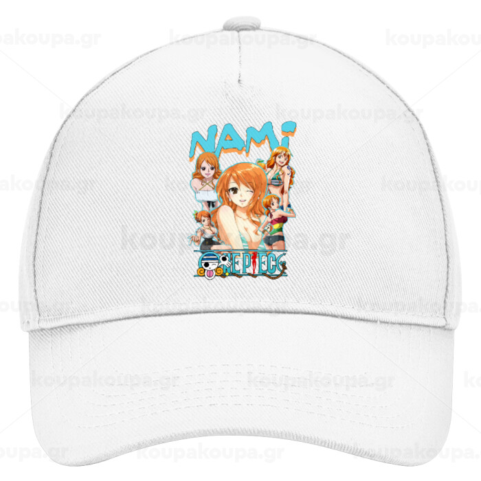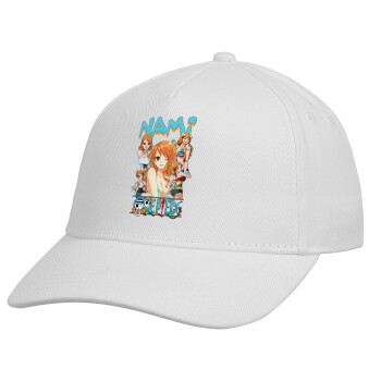 Nami One Piece, Adult Baseball Cap, Drill, White (100% COTTON, ADULT, UNISEX, ONE SIZE)