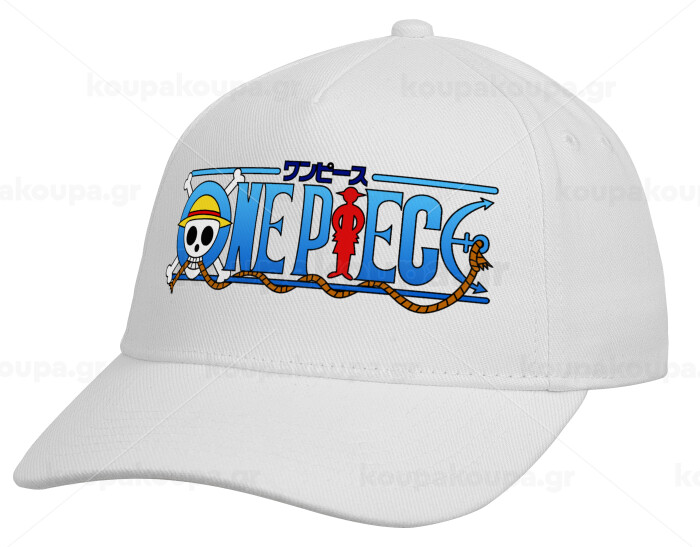 Onepiece logo, Adult Baseball Cap, Drill, White (100% COTTON, ADULT, UNISEX, ONE SIZE)