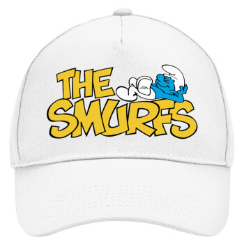 The smurfs, Adult Baseball Cap, Drill, White (100% COTTON, ADULT, UNISEX, ONE SIZE)