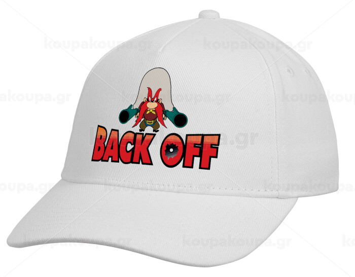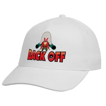 Yosemite Sam Back OFF, Adult Baseball Cap, Drill, White (100% COTTON, ADULT, UNISEX, ONE SIZE)