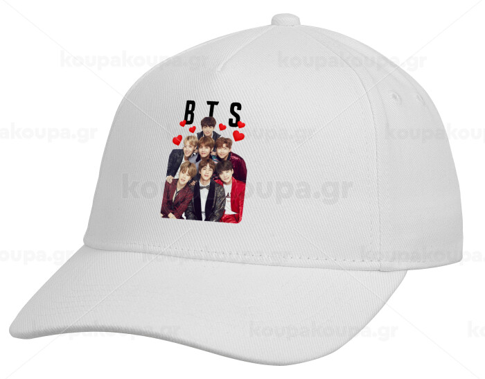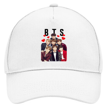 BTS hearts, Adult Baseball Cap, Drill, White (100% COTTON, ADULT, UNISEX, ONE SIZE)