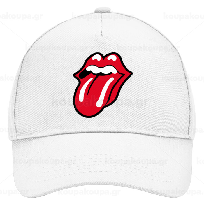 Rolling Stones Kiss, Adult Baseball Cap, Drill, White (100% COTTON, ADULT, UNISEX, ONE SIZE)