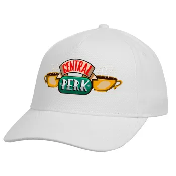 Central perk, Adult Baseball Cap, Drill, White (100% COTTON, ADULT, UNISEX, ONE SIZE)