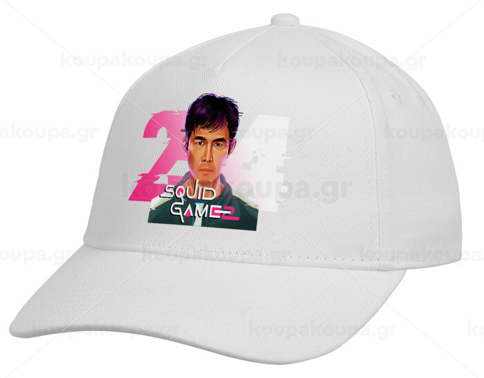 Squid game 456 Gi-Hun, Adult Baseball Cap, Drill, White (100% COTTON, ADULT, UNISEX, ONE SIZE)